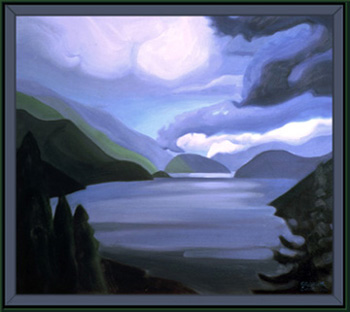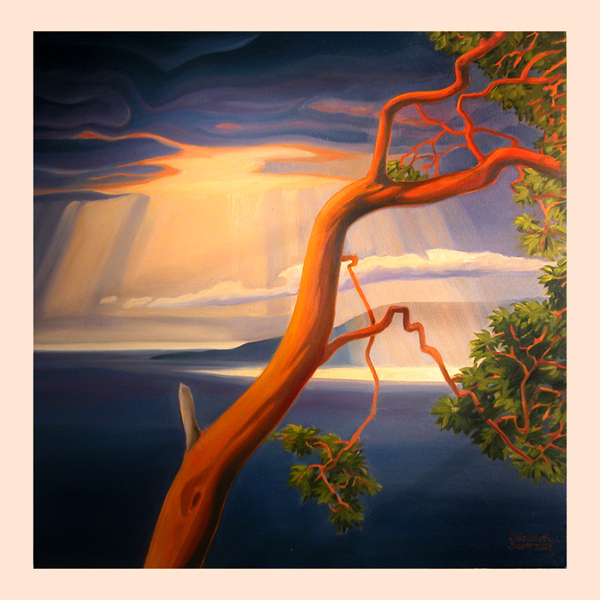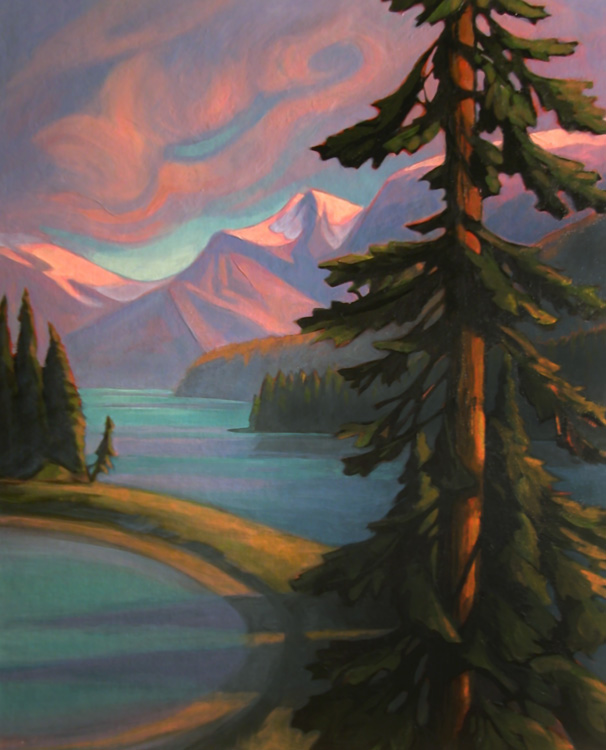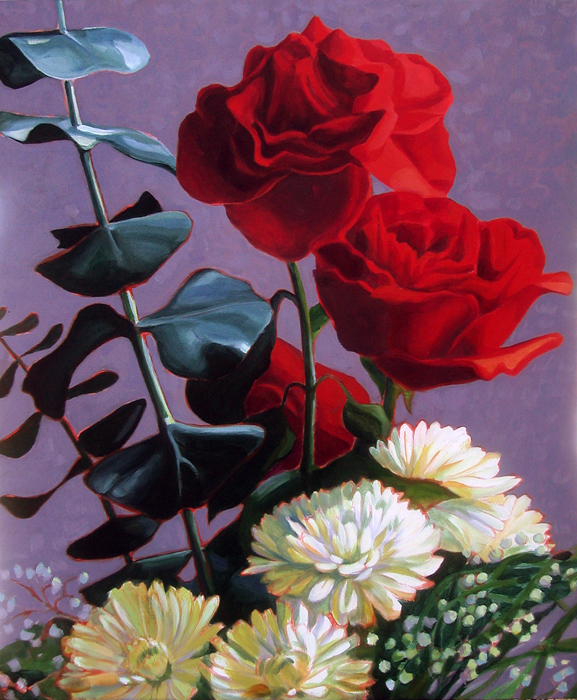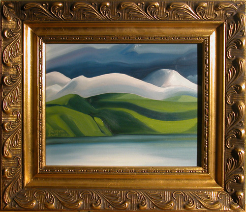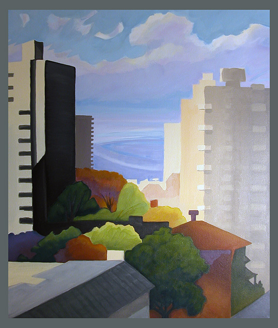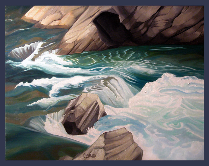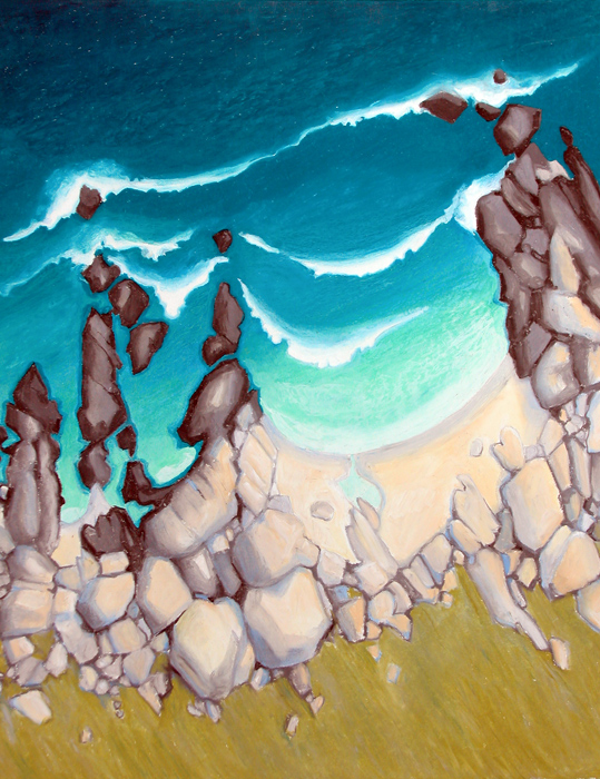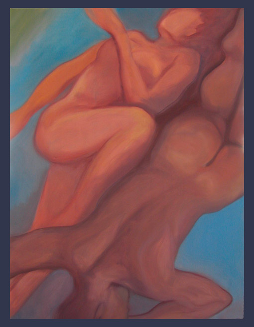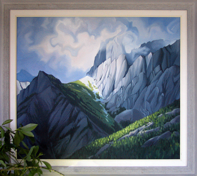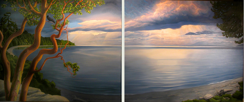 Alternatively, custom paintings on canvas, such as the large diptychs shown above, provide a large image that is movable.